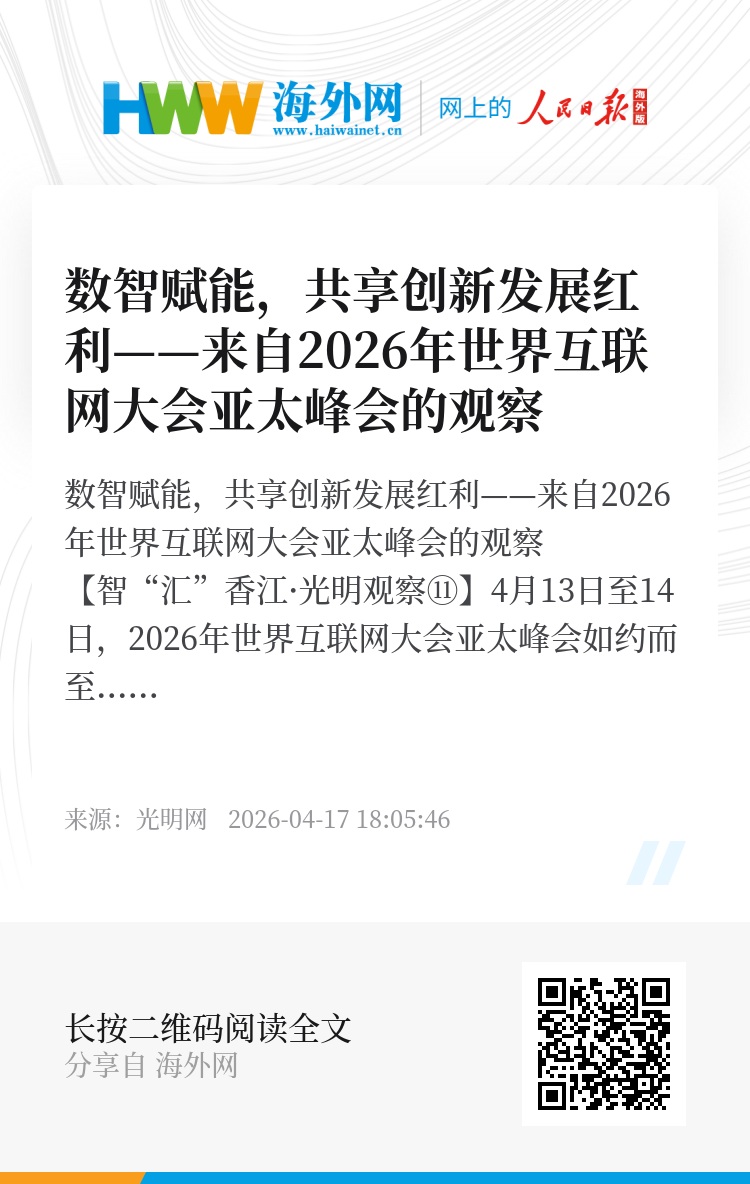 4月13日至14日,2026年世界互联网大会亚太峰会如约而至。本次峰会由世界互联网大会主办,香港特别行政区政府承办,香港特别行政区政府创新科技及工业局等协办。围绕“数智赋能 创新发展——携手构建网络空间命运共同体”这一主题,全球近千名嘉宾碰撞交流、分享智慧,为亚太地区开拓数字合作新机遇新市场,持续搭建全球参与的数智交流合作平台。