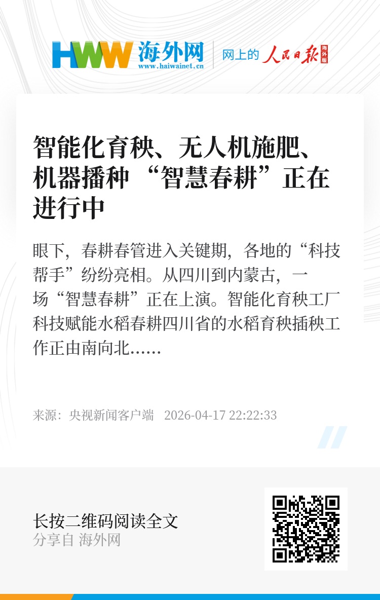 眼下,春耕春管进入关键期,各地的“科技帮手”纷纷亮相。从四川到内蒙古,一场“智慧春耕”正在上演。
