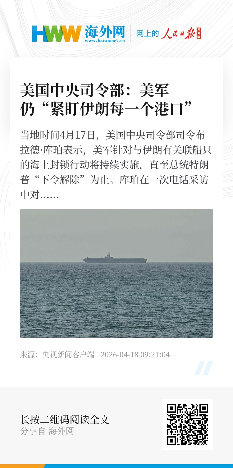 当地时间4月17日,美国中央司令部司令布拉德·库珀表示,美军针对与伊朗有关联船只的海上封锁行动将持续实施,直至总统特朗普“下令解除”为止。