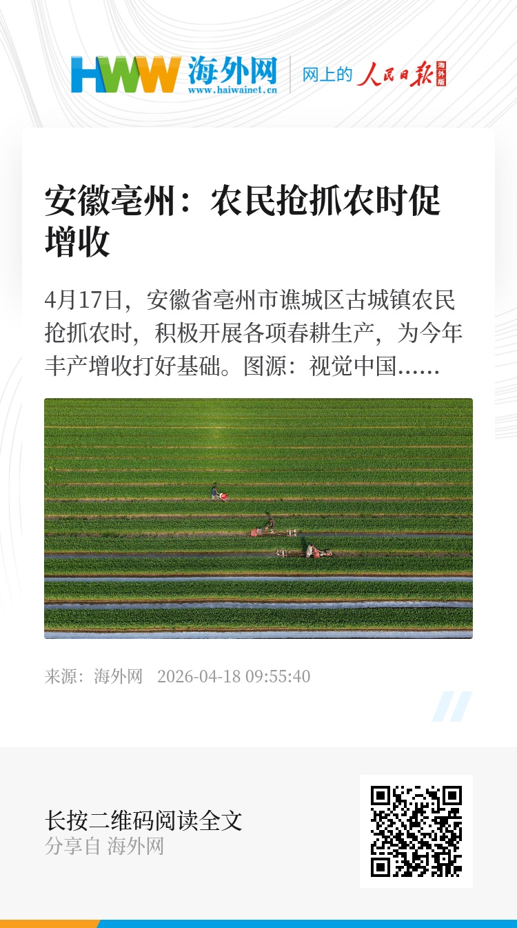32946596,.安徽亳州:农民抢抓农时促增收,.2026-04-18 09:55:40,.204555,.陈菲扬、张霓