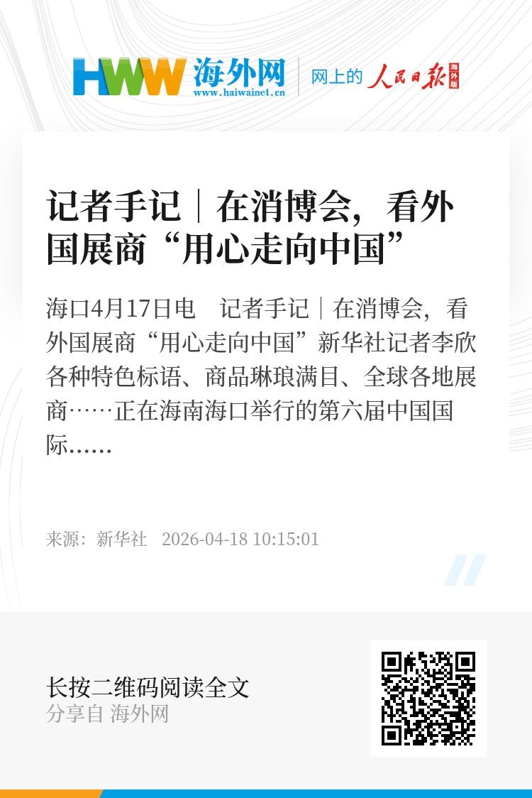 新华社海口4月17日电 记者手记|在消博会,看外国展商“用心走向中国”