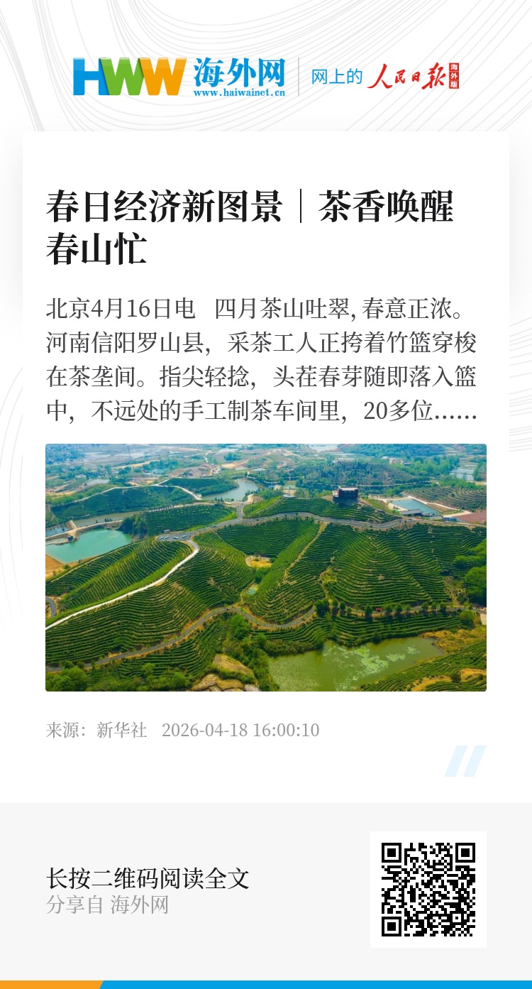 从翠绿茶垄到云雾茶山,从热闹的茶博园到浪漫的茶庄园,茶香跨越千里。一个个春山采茶忙的图景,激活了消费、带动了增收、留住了乡愁。缕缕茶香之间,乡村振兴的脉络愈发清晰,春天的故事愈发鲜活。
