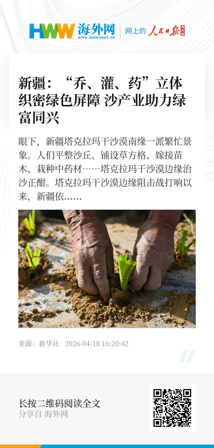 眼下,新疆塔克拉玛干沙漠南缘一派繁忙景象。人们平整沙丘、铺设草方格、嫁接苗木、栽种中药材……塔克拉玛干沙漠边缘治沙正酣。