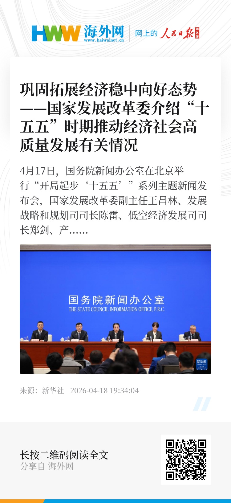 新华社北京4月17日电 题:巩固拓展经济稳中向好态势——国家发展改革委介绍“十五五”时期推动经济社会高质量发展有关情况