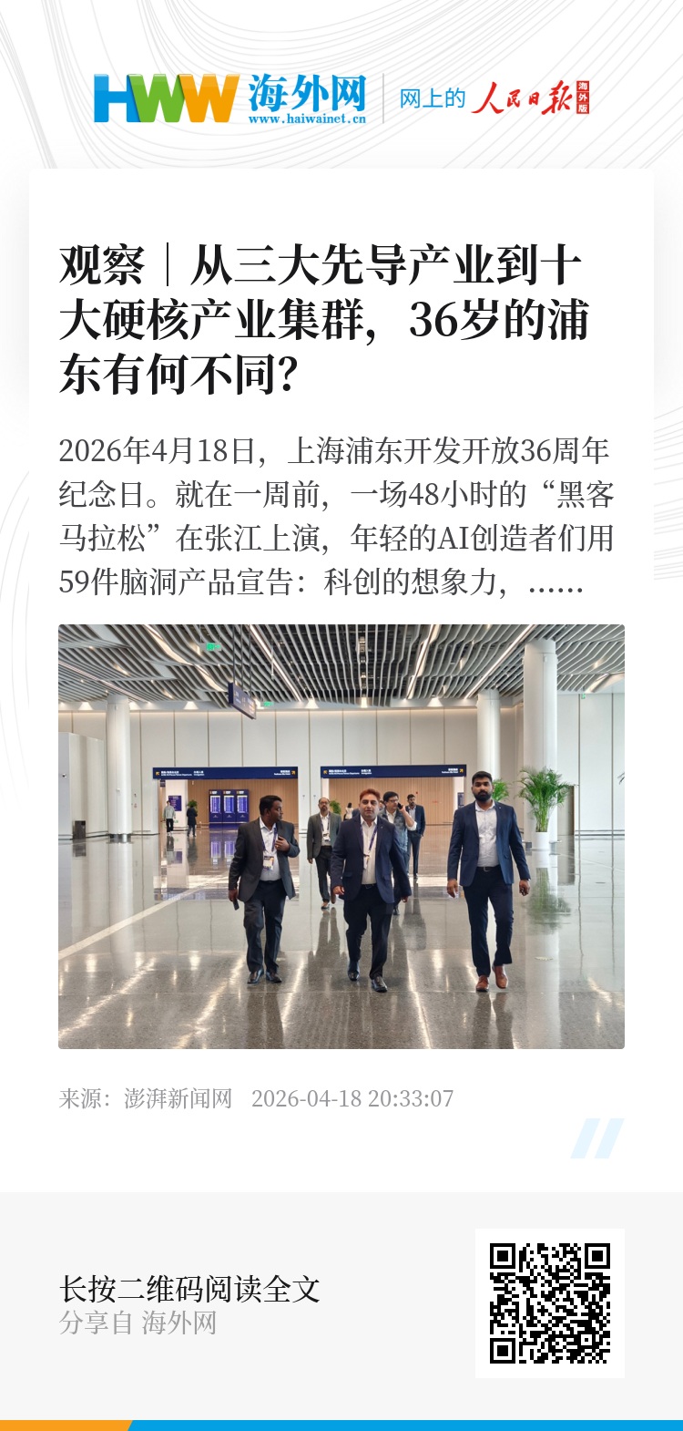 2026年4月18日,上海浦东开发开放36周年纪念日。
