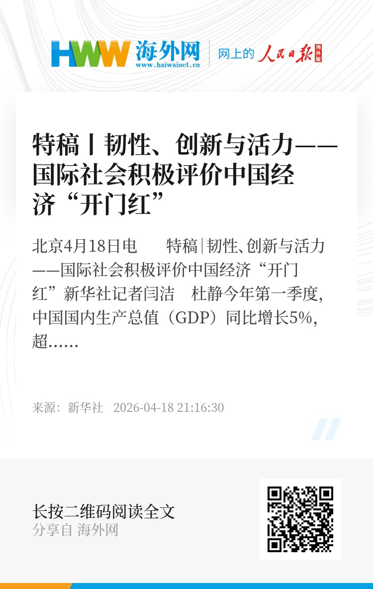 新华社北京4月18日电 特稿|韧性、创新与活力——国际社会积极评价中国经济“开门红”