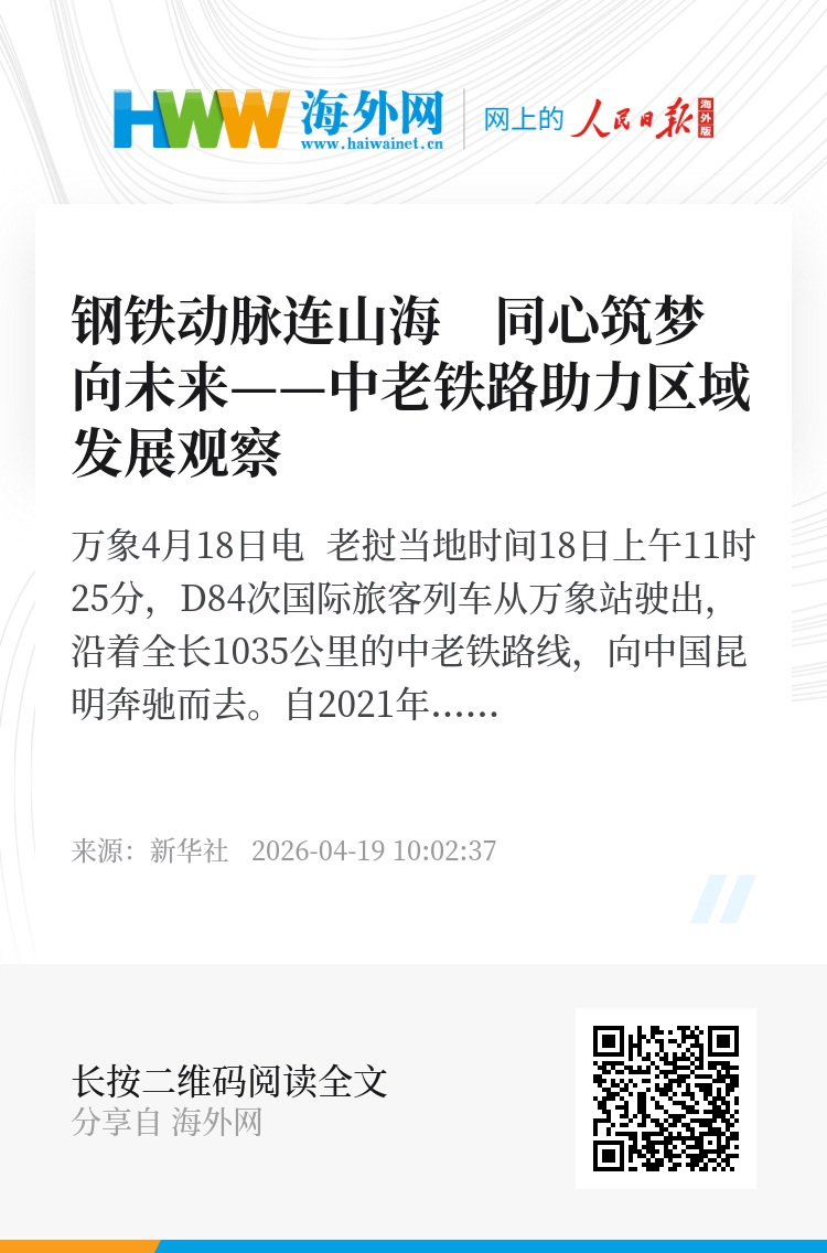 从人文互通到贸易升级,从技术传授到标准共建,中老铁路跨越山海、联通民心。在构建中老命运共同体的征程上,一列列“复兴号”“澜沧号”正沿着这条钢铁动脉,驶往共同繁荣的美好未来。(新华社记者樊曦 赵旭 浦超)