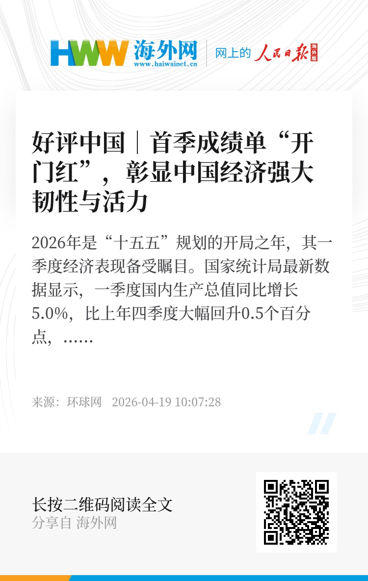 2026年是“十五五”规划的开局之年,其一季度经济表现备受瞩目。国家统计局最新数据显示,一季度国内生产总值同比增长5.0%,比上年四季度大幅回升0.5个百分点,主要宏观指标增速回升,新动能快速成长,国民经济实现良好开局。这一成绩单,是在去年一季度高基数、外部环境更加复杂的背景下取得的,来之不易,成色十足,充分彰显了中国经济的强大韧性与蓬勃活力。