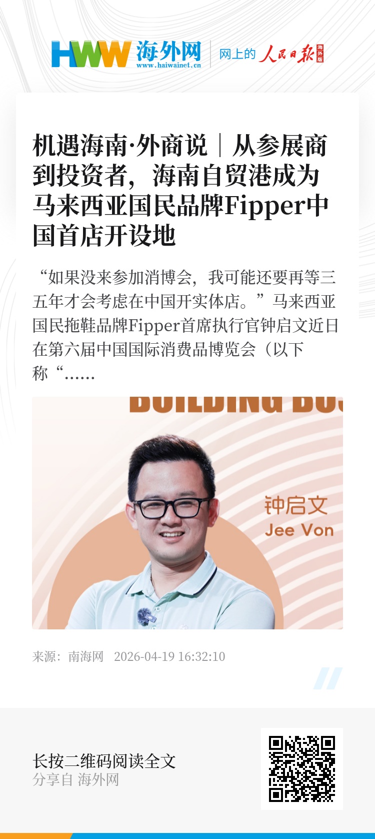 作为东南亚家喻户晓的拖鞋品牌,Fipper最早通过阿里巴巴项目接触中国市场,但真正促成其在中国落地实体零售的,正是2024年首次参加消博会这一契机。自2024年首次参展后,钟启文发现了拖鞋这一商品在海南本地的消费市场,也发现了海南作为一个国际旅游地而拥有的广大消费市场。于是,在经过实地调研和深思熟虑后,去年钟启文在海口开设了Fipper的中国首店,随后又布局三亚。