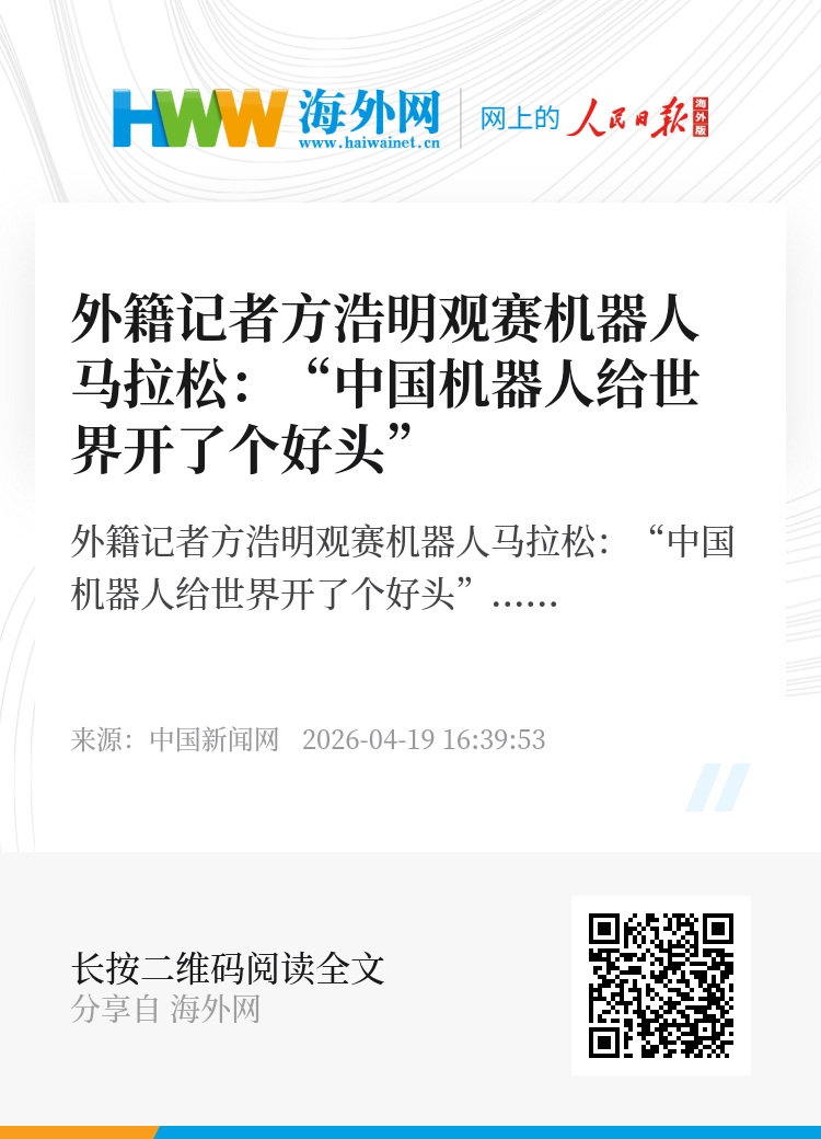 外籍记者方浩明观赛机器人马拉松:“中国机器人给世界开了个好头”