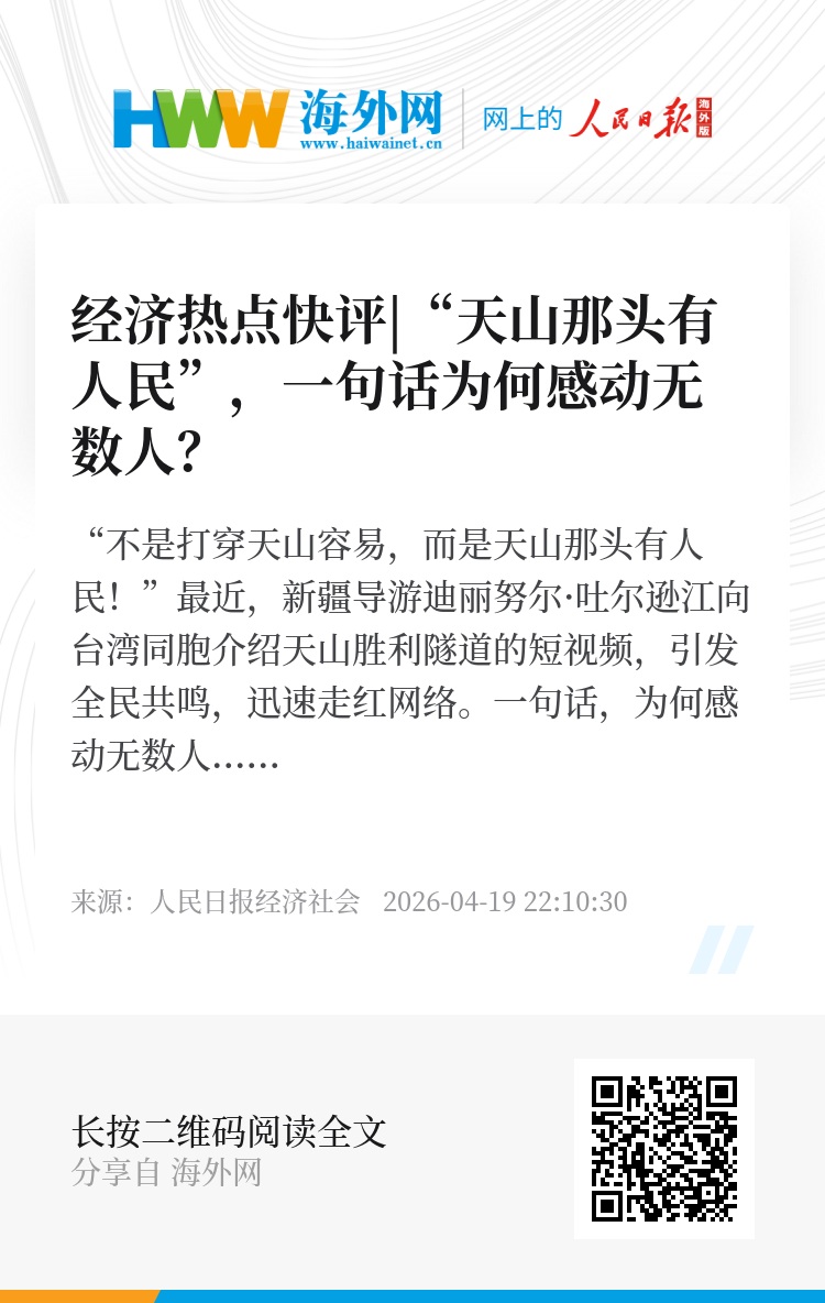 “不是打穿天山容易,而是天山那头有人民!”最近,新疆导游迪丽努尔·吐尔逊江向台湾同胞介绍天山胜利隧道的短视频,引发全民共鸣,迅速走红网络。