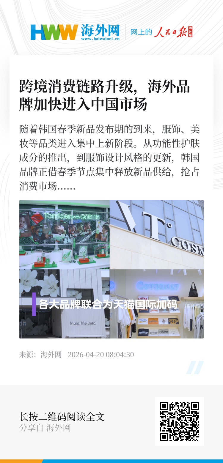 “中国市场对全球时尚品牌具有重要意义,而天猫国际在众多平台中具备较高信任度。”韩国服饰品牌COVERNAT中国部经理权成禺在接受采访时表示,“通过天猫国际,我们可以以官方旗舰店的形式与消费者建立直接连接,同时天猫国际在物流、支付等方面的完善基础设施为业务开展提供了坚实保障,平台上多样化的营销活动,也对品牌销售增长提供了很大助力。”