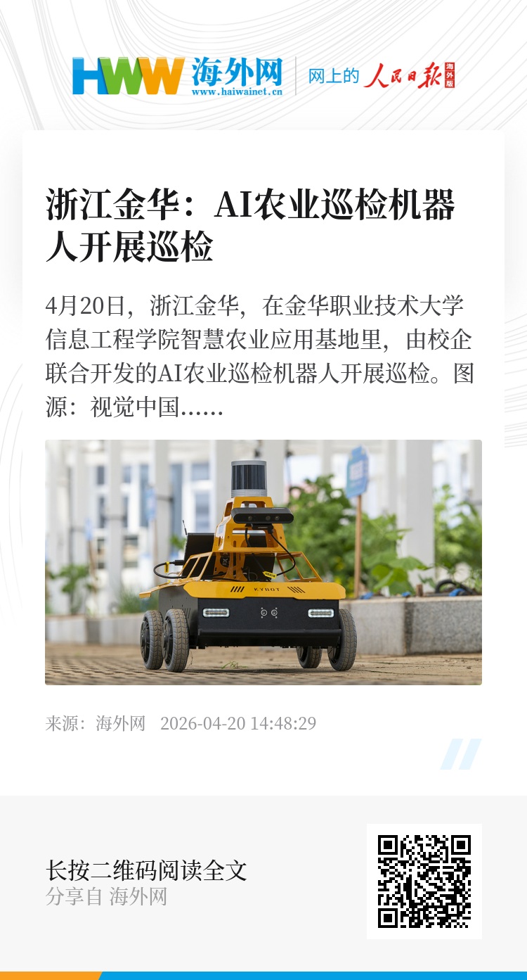 32946965,.浙江金华:AI农业巡检机器人开展巡检,.2026-04-20 14:48:29,.204309,.陈亚楠、侯兴川
