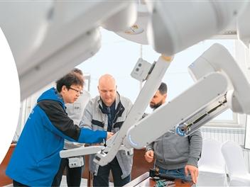 4月16日,在哈尔滨思哲睿智能医疗设备股份有限公司技术服务培训中心,技术人员对国外的临床支持工程师进行培训。