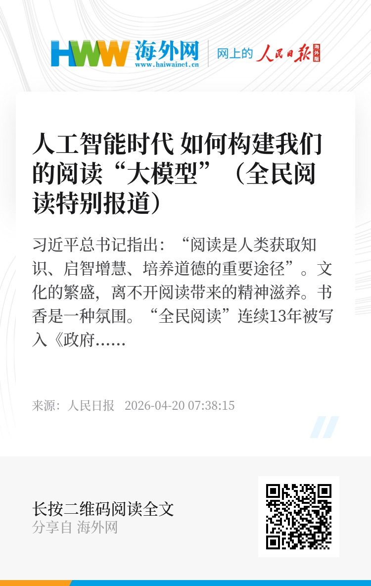 今天,随着工作生活节奏加快,数字阅读、碎片化阅读、AI助读等越来越普遍,很多人会有疑问:既然AI能快速给出答案,阅读还有用吗?还有人一味依赖AI获取信息,渐渐失去了深度阅读的耐心。