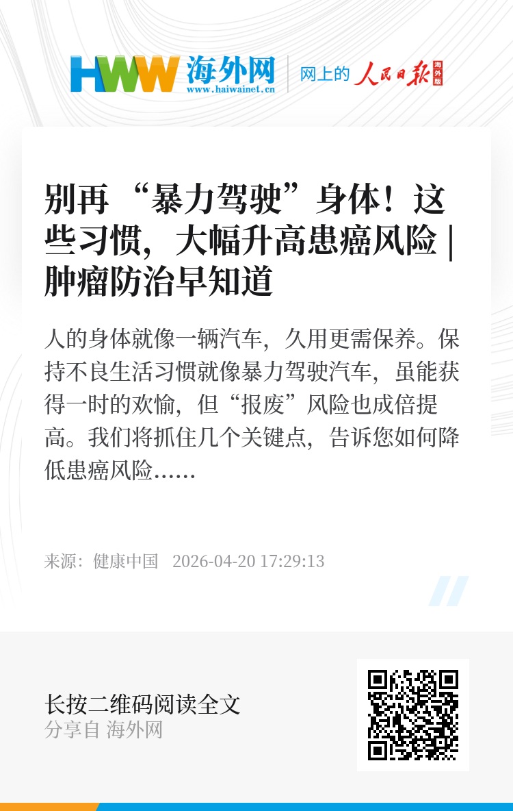 人的身体就像一辆汽车,久用更需保养。保持不良生活习惯就像暴力驾驶汽车,虽能获得一时的欢愉,但“报废”风险也成倍提高。我们将抓住几个关键点,告诉您如何降低患癌风险。