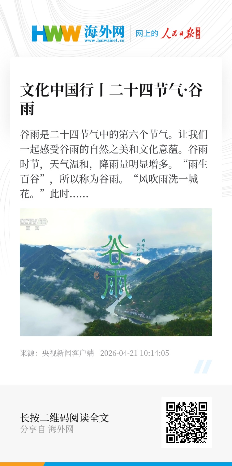 谷雨是二十四节气中的第六个节气。让我们一起感受谷雨的自然之美和文化意蕴。
