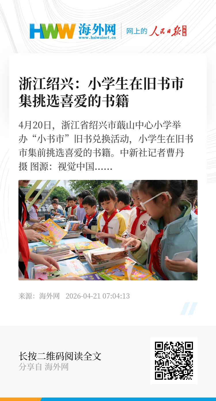 32947081,.浙江绍兴:小学生在旧书市集挑选喜爱的书籍,.2026-04-21 07:04:13,.204441,.张荣耀、张霓
