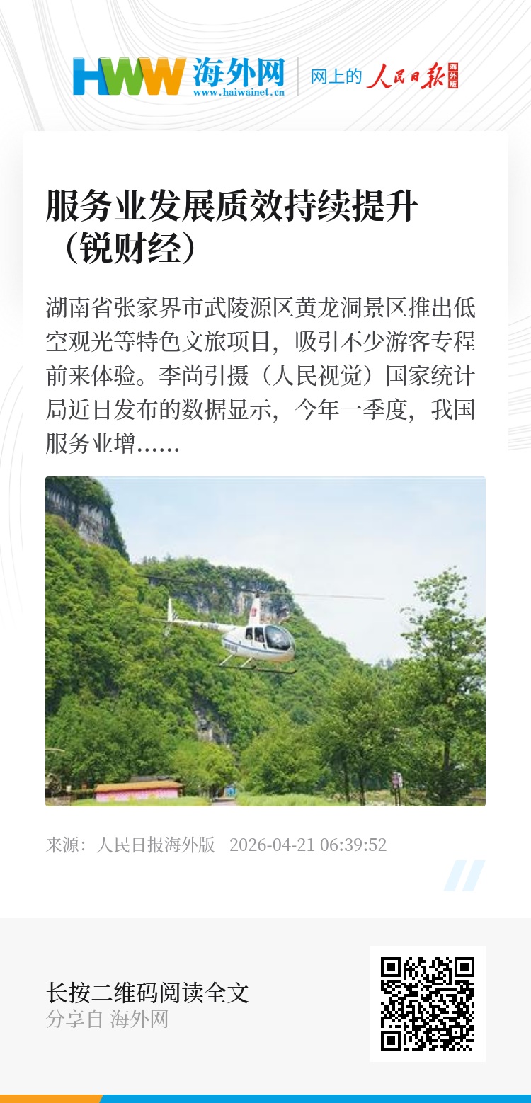 彭永涛介绍,一季度,各地区各部门强化服务业扩能提质各项政策落实,加快构建优质高效服务业新体系,服务业经济实现较快增长。