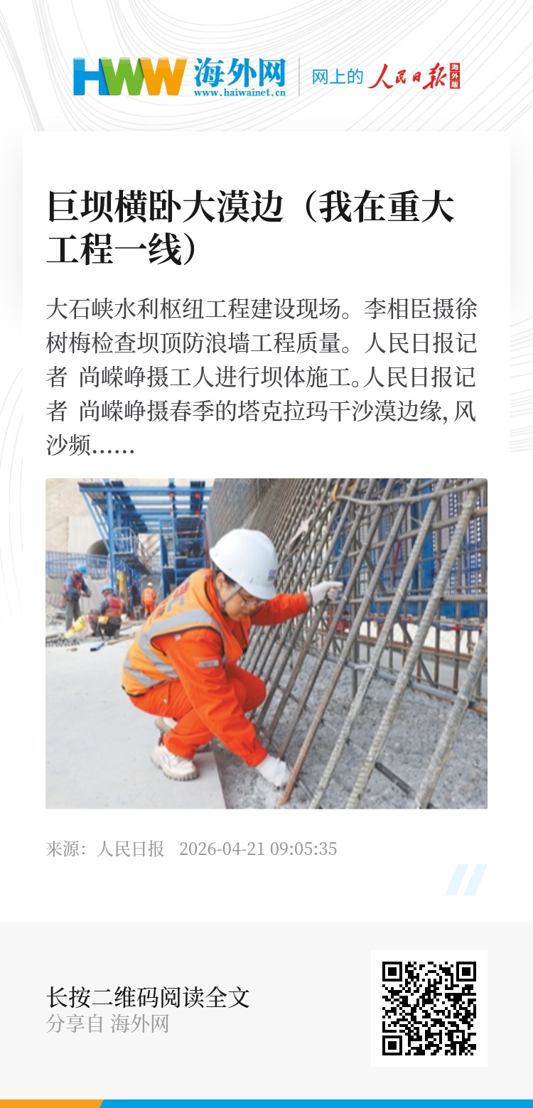 春季的塔克拉玛干沙漠边缘,风沙频顾。从新疆阿克苏地区温宿县循着库玛拉克河向上游回溯,宽阔的河道渐渐收窄,茫茫戈壁连接着巍峨的天山山脉。继续前行,透过灰蒙蒙的空气,一座庞然大物露出真容——大石峡水利枢纽工程,一座混凝土面板砂砾石坝横卧于山谷之间。