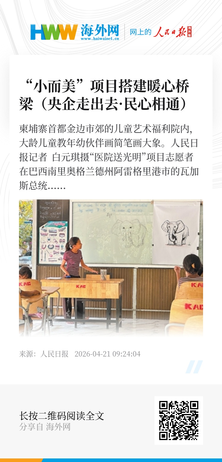 “十五五”规划纲要提出,坚持共商共建共享、开放绿色廉洁、高标准惠民生可持续的指导原则,完善推进高质量共建“一带一路”机制,深化基础设施“硬联通”、规则标准“软联通”、同共建国家人民“心联通”。当前,越来越多中国企业在扎实推进基础设施建设与产业务实合作的同时,精准对接当地民生关切,以形式多样的“小而美”项目搭建民心相通的桥梁,为共建“一带一路”合作注入更多温度。