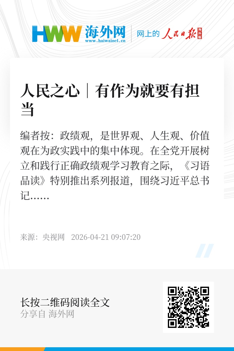 编者按:政绩观,是世界观、人生观、价值观在为政实践中的集中体现。在全党开展树立和践行正确政绩观学习教育之际,央视网《习语品读》特别推出系列报道,围绕习近平总书记关于树立和践行正确政绩观的重要论述,与您一起学习正确政绩观的丰富内涵与实践要求。
