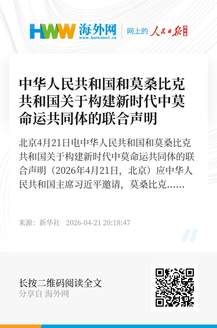 中华人民共和国和莫桑比克共和国关于构建新时代中莫命运共同体的联合声明