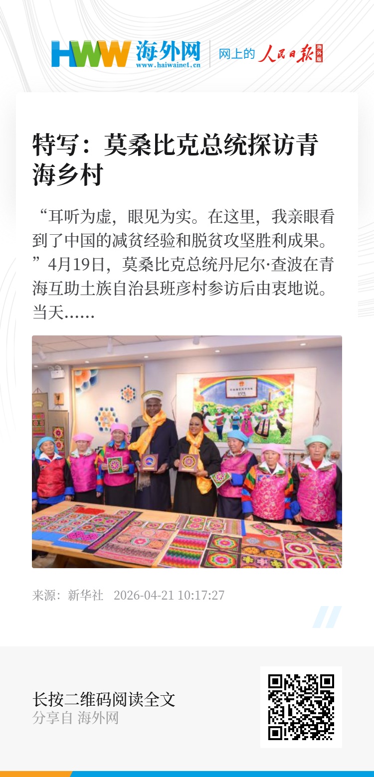 “耳听为虚,眼见为实。在这里,我亲眼看到了中国的减贫经验和脱贫攻坚胜利成果。”4月19日,莫桑比克总统丹尼尔·查波在青海互助土族自治县班彦村参访后由衷地说。