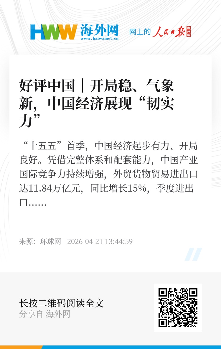 开局关乎全局,起步决定后程。“十五五”首季的良好开局,为中国经济全年实现预期目标奠定了坚实基础。面向未来,只要我们坚定不移办好自己的事,坚定不移扩大高水平对外开放,加快构建新发展格局,推动高质量发展,中国经济的韧性必将更加强劲,中国发展的前景必将更加光明。一个充满活力、开放包容的中国,正与世界携手,共创更加繁荣美好的未来。(明月松)