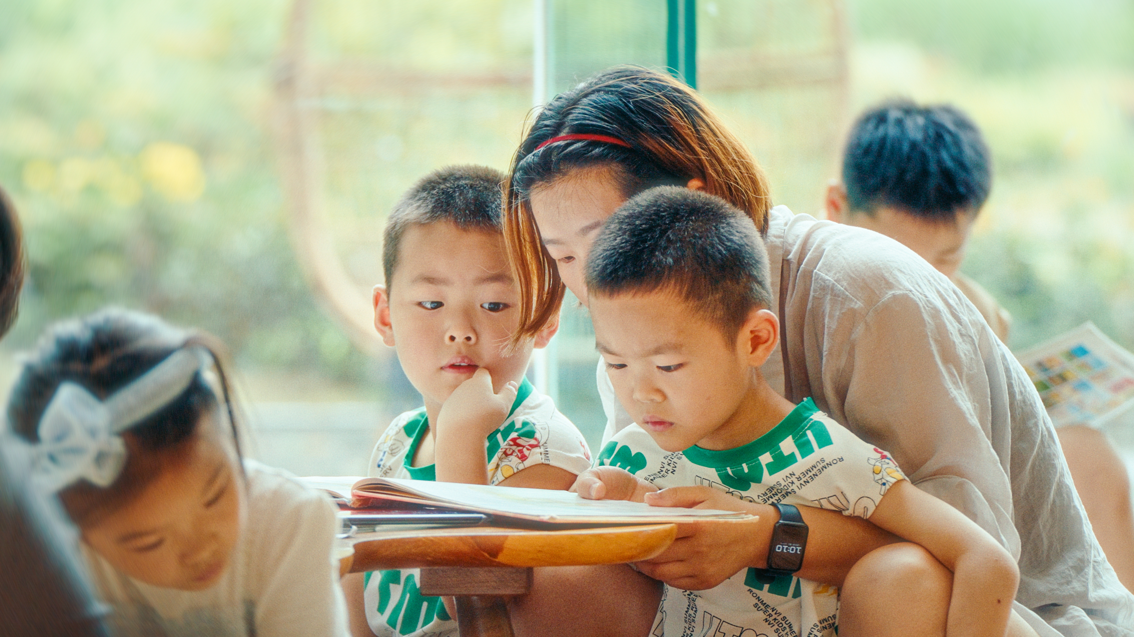《悦读》 峡江县:几名小孩正在“倡导全民阅读 建设书香玉峡”图书巡展上看书。曾双全 摄