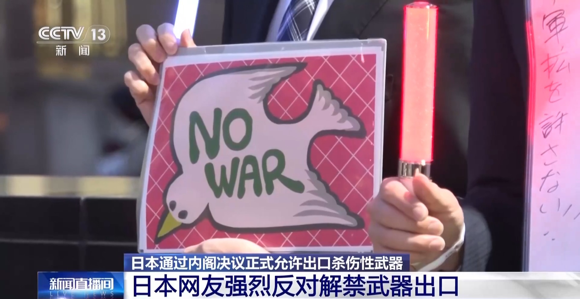 总台记者 李卫兵:在社交媒体上,日本网友也表达了对日本解禁武器出口的强烈反对,有网友称,“通过杀人来赚钱的日本还有什么夸耀可言,绝不能容忍。不能允许不通过国会肆意作出这样的决定”有网友发出疑问,“杀伤性武器出口问题相当于修宪级别的‘国策’变更”。但却以内阁会议方式决定的,至少也需要在国会进行审议,这个决策过程难道没有问题吗?