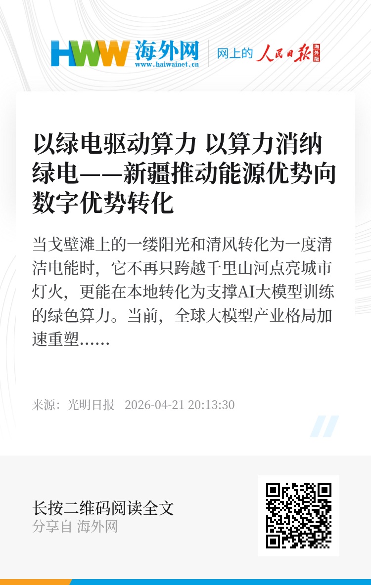 从电网的智慧调控,到产业的生态构建,再到应用的实际落地,新疆逐步走出一条“以绿电驱动算力、以算力消纳绿电”的融合发展之路。这不仅为清洁能源的高效利用提供了新路径,也为边疆地区培育数字经济新质生产力、实现生态与经济效益双赢,提供了扎实而生动的实践范本。