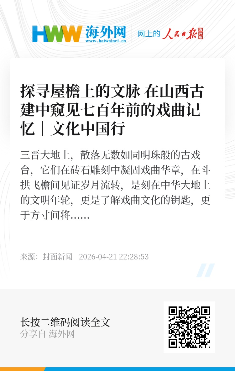 是融建筑、雕塑、工艺、美术和文学于一体的珍贵文物,也是戏曲文化在人间烟火中生生不息的传承见证,在山西的一座座古戏台上,那些古老而动人的文化故事仍在缓缓讲述。