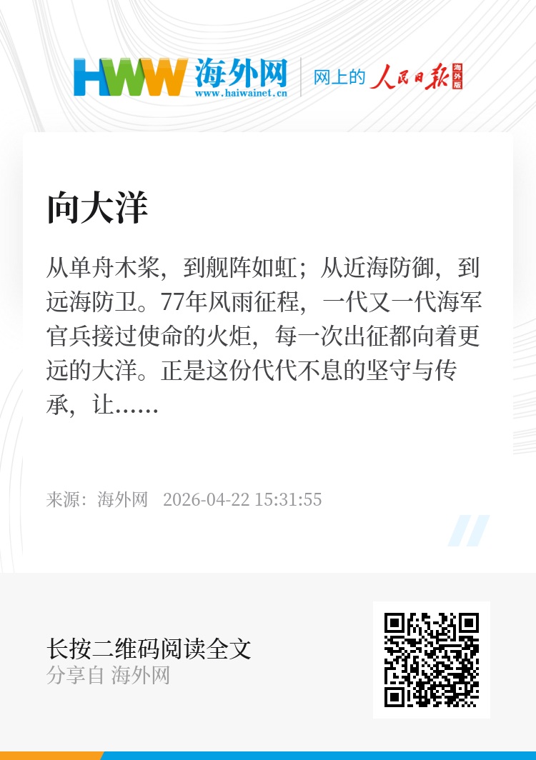 从单舟木桨,到舰阵如虹;从近海防御,到远海防卫。77年风雨征程,一代又一代海军官兵接过使命的火炬,每一次出征都向着更远的大洋。正是这份代代不息的坚守与传承,让人民海军在战斗中成长、在奋进中壮大。