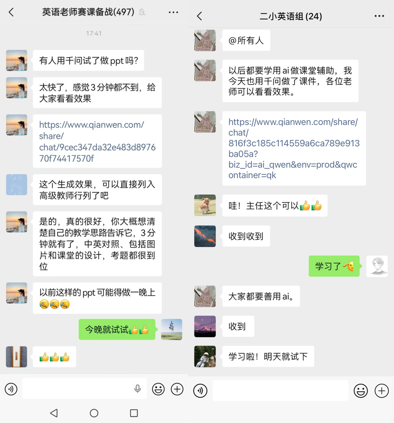 这一功能意外受到英语老师欢迎,不少英语老师在社交平台和教师群里自发“种草”,安利用千问把想好的教学设计“变”成一份完整教学PPT。