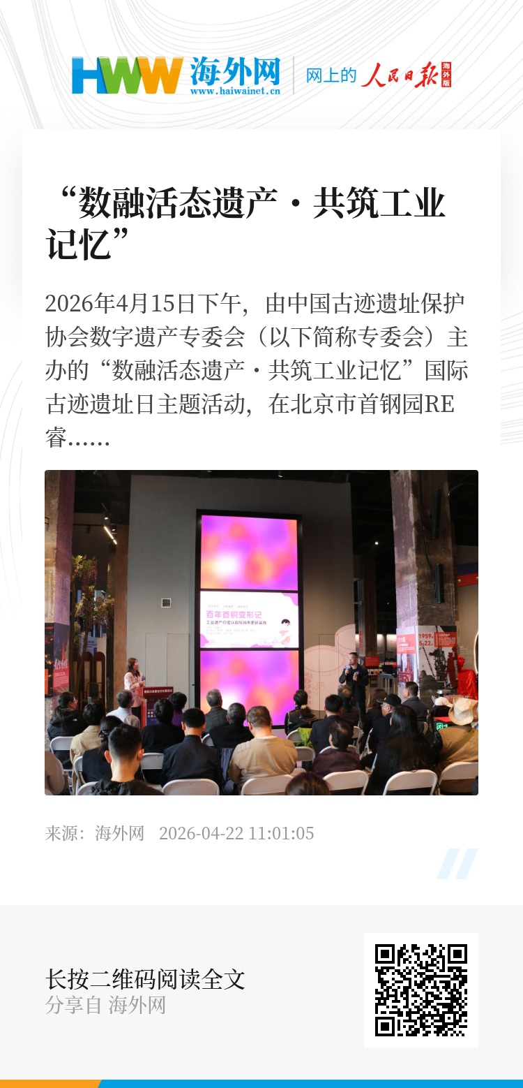 2026年4月15日下午,由中国古迹遗址保护协会数字遗产专委会(以下简称专委会)主办的“数融活态遗产・共筑工业记忆”国际古迹遗址日主题活动,在北京市首钢园RE睿·三高炉数字博物馆顺利举行。活动紧扣2026年国际古迹遗址日“活态遗产”主题,聚焦数字时代背景下工业遗产的活态传承与创新实践。