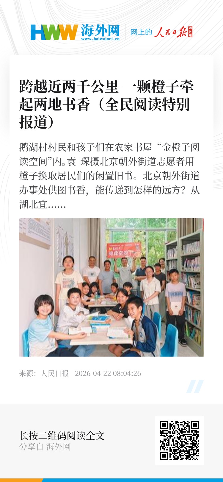 朝外街道的“金橙子”项目,是首都的公益名片;赣南的甜脐橙,是老区产业发展的标志性成果。一南一北的“橙子”因书相遇,这背后,有对读书朴素的敬意,也有对助人温暖的善意。