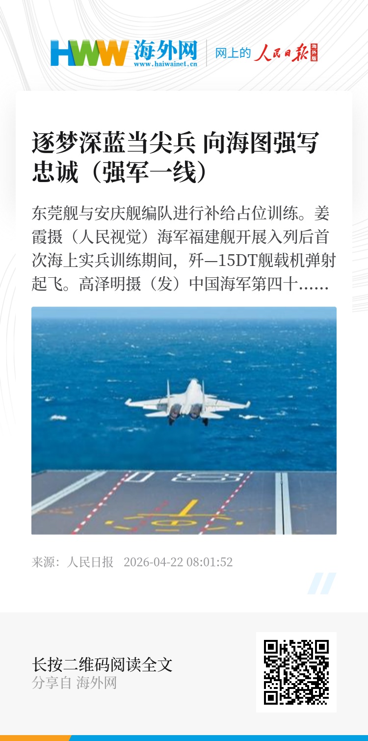 四月风暖,春意正浓,某海域白浪翻滚、硝烟阵阵,海军福建舰航母编队正在组织一场实兵训练。甲板之上,战鹰列阵、引擎轰鸣,舰载机直冲云霄,搏击海空。