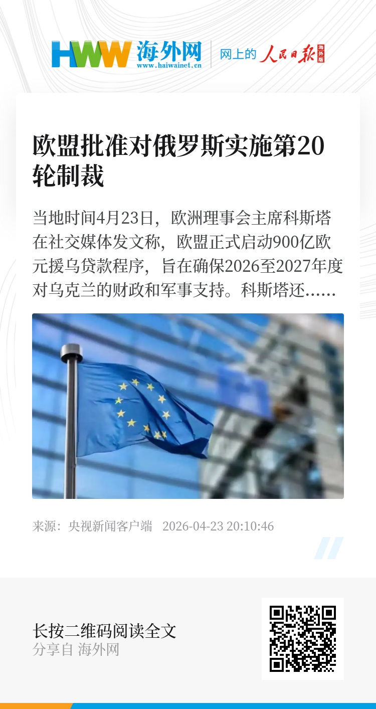 科斯塔还表示,欧盟通过了对俄罗斯第20轮制裁方案。(总台记者 刘婵娟)