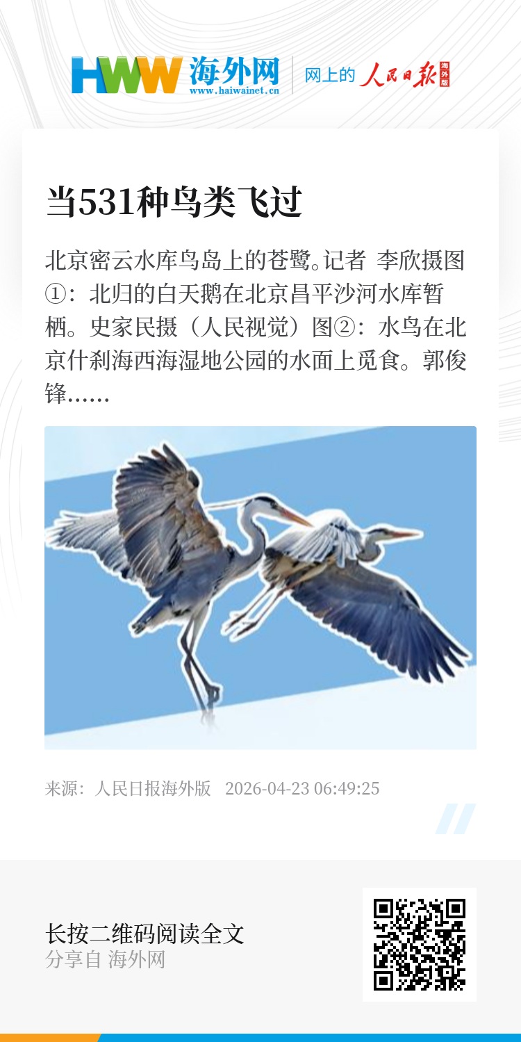 北京鸟类已达531种。这个数字背后,不只是越来越热闹的观鸟镜头,更是一座城市几十年积累、十多年调查、一次次公众发现与专家复核的结果。