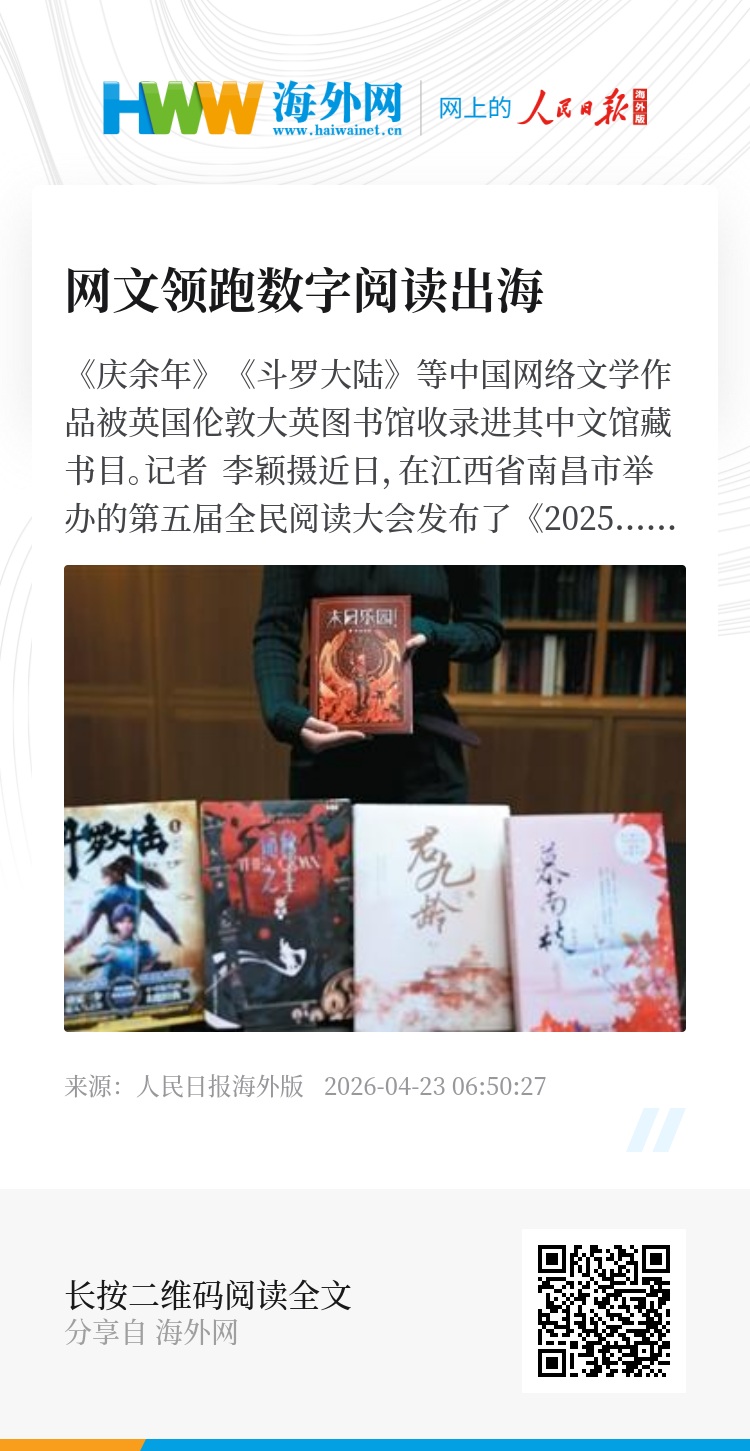 出海成绩亮眼背后,是网络文学精品化趋势增强。作为全球最大的学术图书馆,大英图书馆于2025年12月第三次收藏中国网络文学作品。至此,该馆累计收藏中国网文作品38部。其中,“柯遥42”的科幻小说《为什么它永无止境》曾斩获2025年银河奖“最佳原创图书奖”,《重生之将门毒后》《国色芳华》《九重紫》《伪像报告》等也以独特的故事设定、高超的叙事技巧,赢得海外读者认可共鸣。