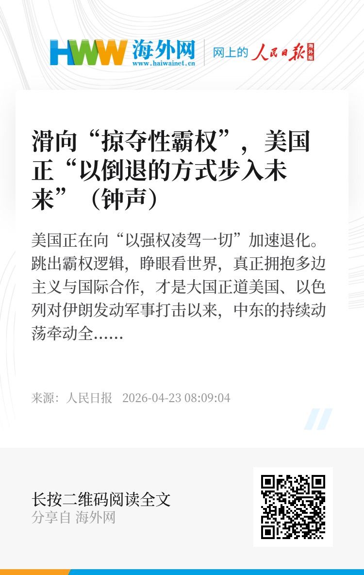 美国正在向“以强权凌驾一切”加速退化。跳出霸权逻辑,睁眼看世界,真正拥抱多边主义与国际合作,才是大国正道