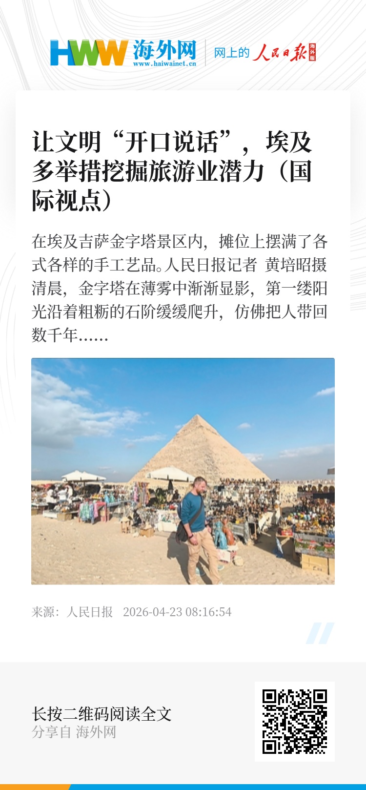 在开罗一家旅行社,记者看到一份专门面向中国市场设计的行程:小团出行、中文导游、文化深度讲解、摄影服务,以及更灵活的时间安排。“过去是我们安排游客行程,现在是游客‘定制我们’。”该旅行社负责人纳迪娅介绍,中国游客更加注重旅行体验和服务细节,如讲解是否生动、行程是否灵活、支付是否便捷等,“这些需求,正在促进整个行业升级”。