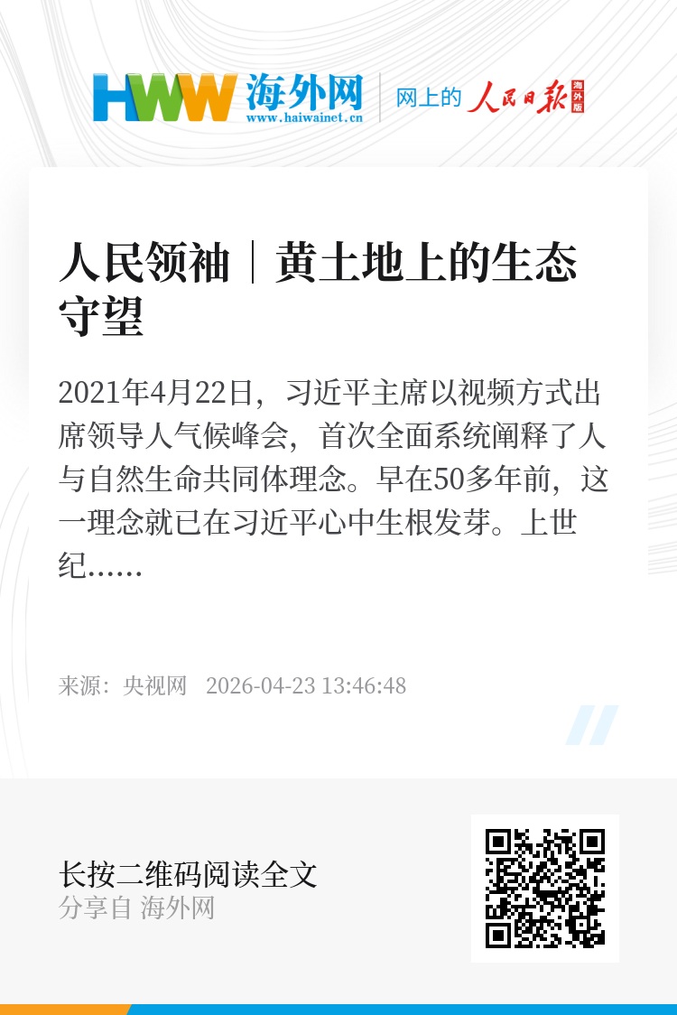 黄土地由黄到绿,群众因绿而富。这是人与自然和谐共生的生动写照,更是人与自然生命共同体理念的生动注脚。