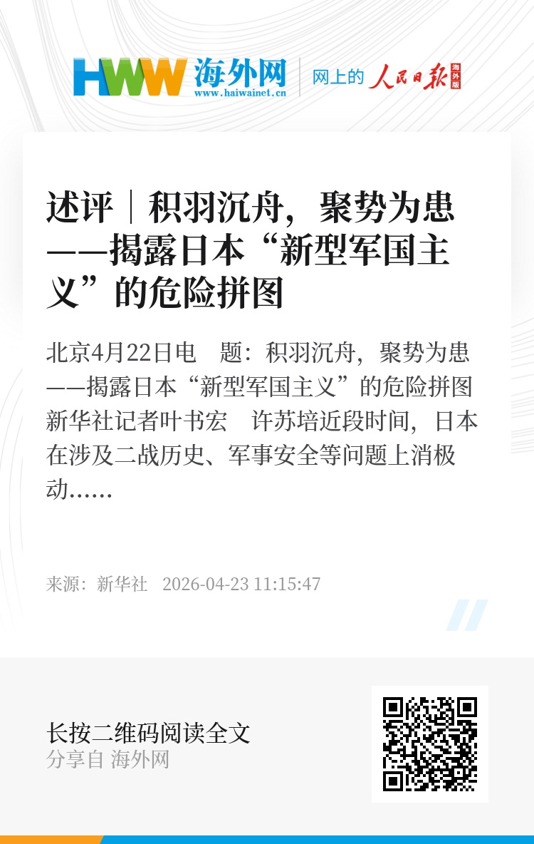 新华社北京4月22日电 题:积羽沉舟,聚势为患——揭露日本“新型军国主义”的危险拼图