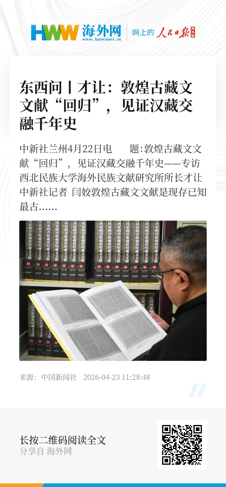 中新社兰州4月22日电 题:敦煌古藏文文献“回归”,见证汉藏交融千年史