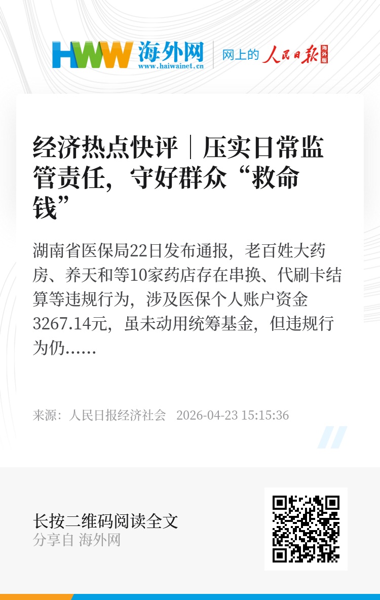 湖南省医保局22日发布通报,老百姓大药房、养天和等10家药店存在串换、代刷卡结算等违规行为,涉及医保个人账户资金3267.14元,虽未动用统筹基金,但违规行为仍为医保基金监管敲响警钟。