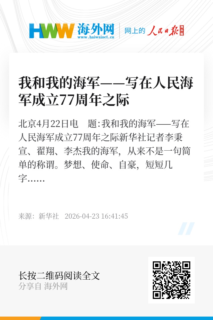 新华社北京4月22日电 题:我和我的海军——写在人民海军成立77周年之际