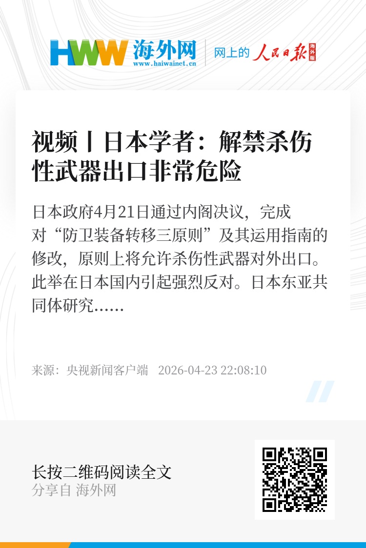 日本政府4月21日通过内阁决议,完成对“防卫装备转移三原则”及其运用指南的修改,原则上将允许杀伤性武器对外出口。此举在日本国内引起强烈反对。