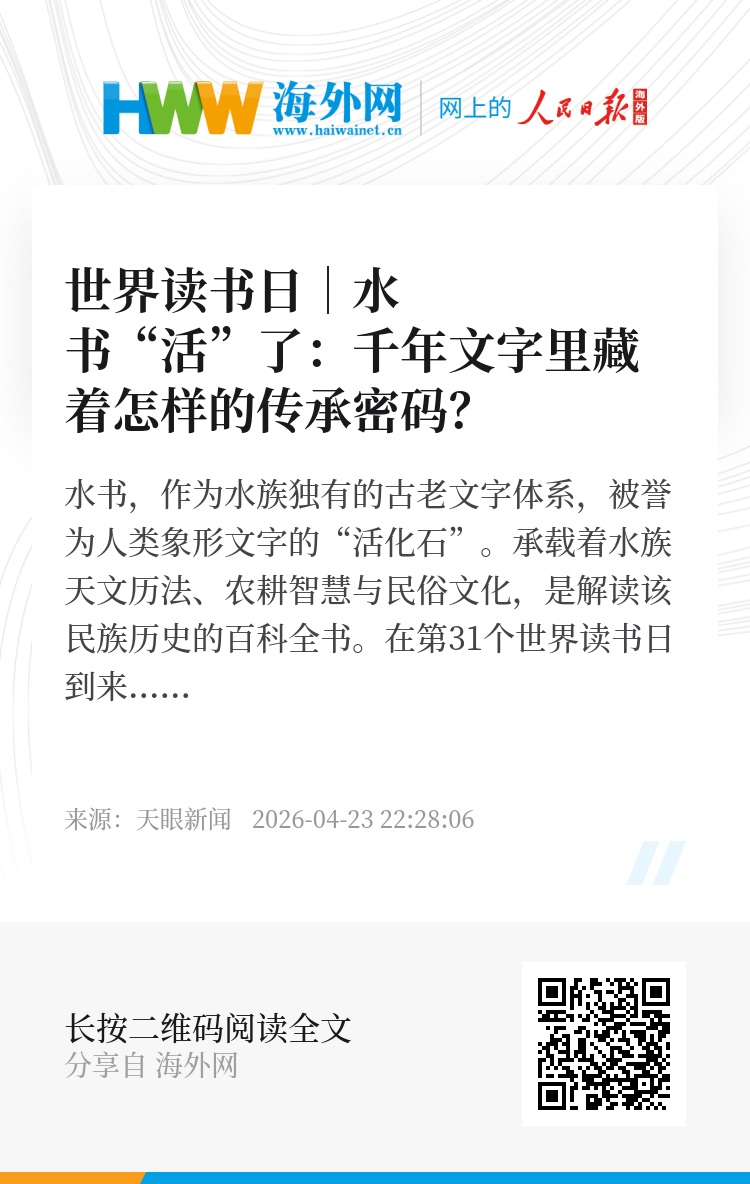 在第31个世界读书日到来之际,我们以水族古老文字为引,用鲜活、生动、年轻化的表达,解锁三都的文旅活力、生态底色、非遗魅力与产业生机,让千年水书“开口说话”,讲述新时代的贵州三都故事。